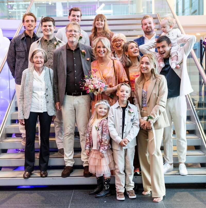 Ik zit in de kamer achter mijn laptop, de zon schijnt. Het is weekend en ik heb ontiegelijk veel zin om te schrijven. Dit keer over geluk! De hond kwispelt, de bergen was van volwassen kinderen en kleinkinderen die hier zo nu en dan verblijven draait, op de achtergrond een lekker muziekje, boven slaapt vast nog een kind uit, de oudste belt dat ze gezellig een weekendje naar zus in Amsterdam gaat en mijn grote liefde zit tegenover me. We genieten samen van het oh zo gewone leventje. Wat hebben we daar enorm naar verlangd. We zijn weer een compleet gezin, natuurlijk ook met ups and downs, maar dat hoort erbij. Geen zware last meer van alles alleen te moeten bedenken. Geen rouwproces meer, waar we allemaal jarenlang ingezeten hebben, terwijl onze geliefdes fysiek nog aanwezig waren. En het gemis van onze Judith en Tom delen we ook samen. We doen veel samen. We hebben een bijzonder jaar achter de rug, waarin het voor ons enorm belangrijk werd of de kinderen er mee konden dealen, met onze liefde. Zoon Jurre gaf Arnold al zeer snel een sleutel van ons huis, dat was een geweldig gebaar. Zij kenden elkaar al van het Odensehuis Sneek. Ook gingen we de verjaardagen van dochter Sanne en jongste zoon Norbert vieren en daarna gingen onze kinderen met elkaar de kroeg in. Al snel merkten we dat het wel klikte. We gingen slaapkamers aanpassen, zodat iedereen gemakkelijk kon komen logeren, foto's van beide gezinnen in huis, meubels husselen en alles wat we deden bespraken we met de kinderen of ze ermee instemden. Ik denk dat dat essentieel is. Als zij happy zijn, is er ruimte voor onze relatie. En dat kregen we. Eind september zijn we getrouwd en lieten alle kinderen ons 'gezinscertificaat' tekenen. De ringen die we hebben laten ontwerpen door Chantal Walsweer, zijn de trouwringen van Judith & Arnold en Tom & mij. Van die 4 zijn 2 prachtige nieuwe ringen gemaakt en zo dragen we onze eerste liefdes altijd een beetje bij ons. We gaan hoe dan ook voor die heerlijke kinderen en kleinkinderen zorgen, maar ook vooral genieten van al dat grut. En van elkaar. Wat is het leven mooi!